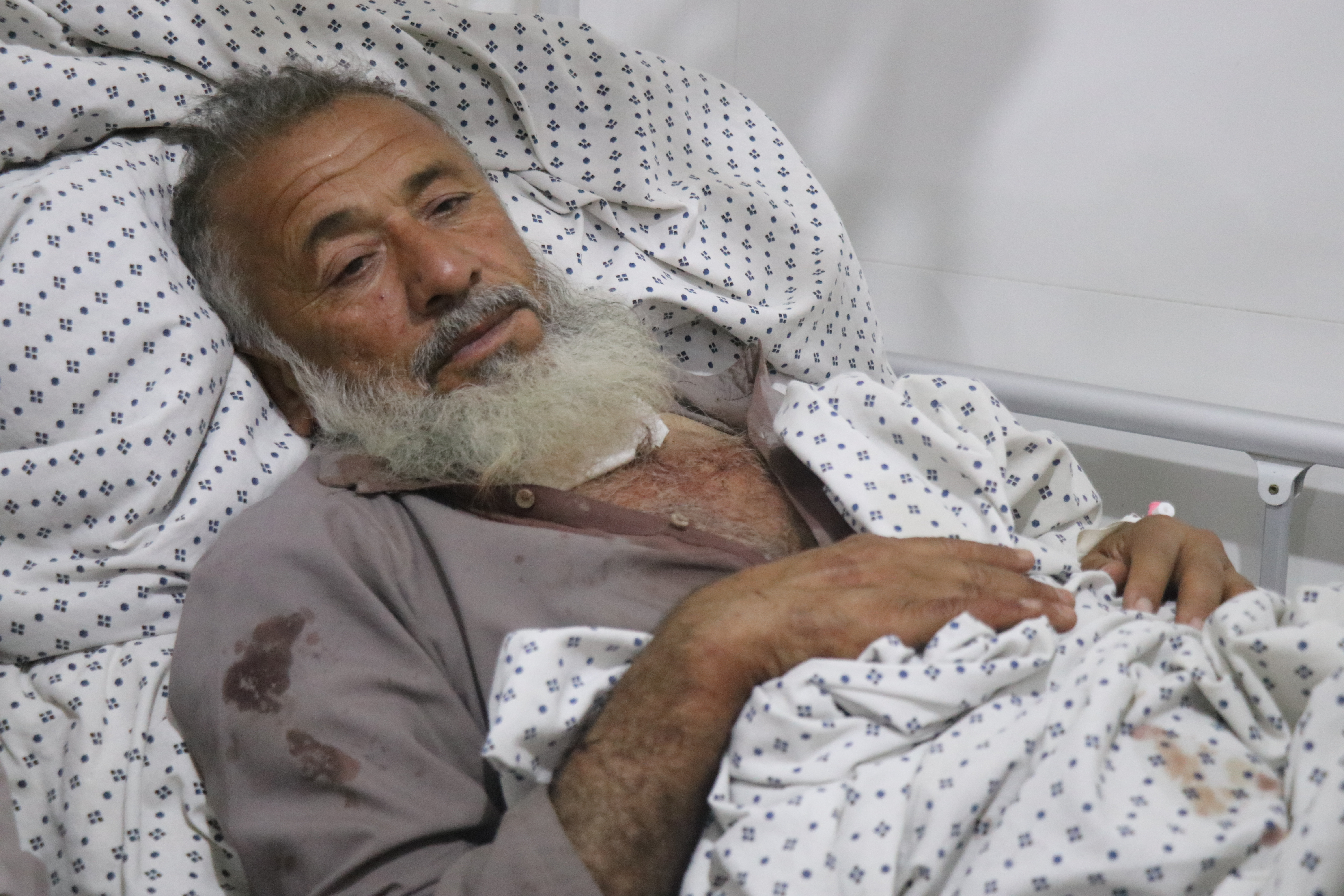 4月27日,在阿富汗东部库纳尔省阿萨达巴德一家医院里,边境冲突中的伤者接受治疗。