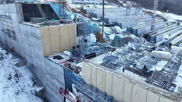 “为了克服严寒、有效施工期短、工艺复杂等难题,我们通过科技赋能与创新,引进塔带式布料机和东北三省首座双240水工搅拌系统,实现重力坝连续5个月单月混凝土浇筑量超4万方,最大月浇筑量达4.73万立方米。”黑龙江省水利水电集团林海水库枢纽项目生产经理王有利介绍,目前项目已累计完成重力坝混凝土浇筑28.77万立方米,占浇筑总量的64.2%,超额完成2025年重力坝混凝土浇筑任务。当前,施工团队正推进重力坝混凝土表面保温板铺贴、覆膜等越冬保护工作,同步开展鱼类增殖站地下管网埋设、右岸上坝路开挖,为明年复工复产筑牢基础。