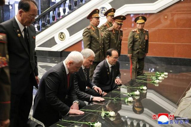 据报道,在朝鲜海外作战功勋纪念馆的开幕式上,到访的俄罗斯议长、防长等高官在纪念碑前集体下跪,对朝军为俄罗斯做出的贡献表达最高敬意,给足了朝鲜面子。